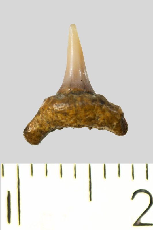 Зуб. Акула. Synechodus dubrisiensis (Mackie, 1863). Классификация: Хордовые Chordata, Позвоночные Vertebrata, Хрящевые рыбы Chondrichthyes, Пластиножаберные Elasmobranchii, Акулы Selachii, Синеходонтообразные Synechodontiformes