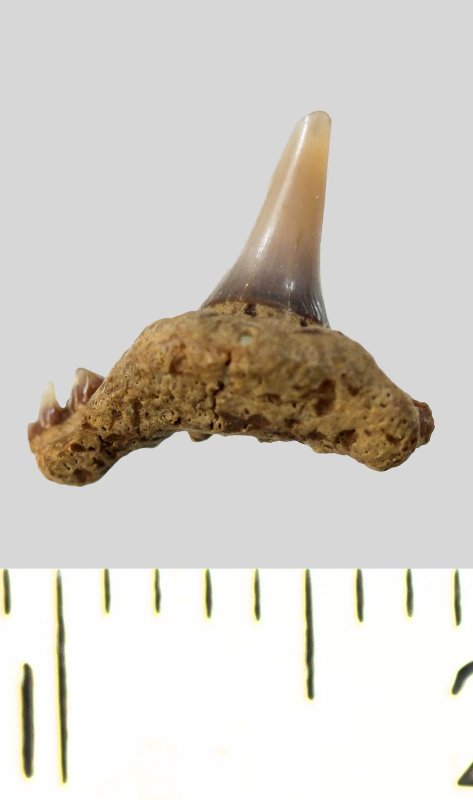 Зуб. Акула. Synechodus dubrisiensis (Mackie, 1863). Классификация: Хордовые Chordata, Позвоночные Vertebrata, Хрящевые рыбы Chondrichthyes, Пластиножаберные Elasmobranchii, Акулы Selachii, Синеходонтообразные Synechodontiformes