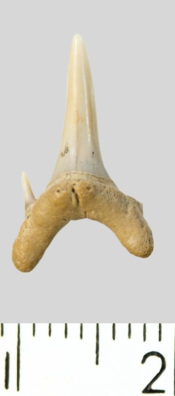 Зуб. Акула. Eostriatolamia subulata (Agassiz, 1843). Классификация: Хордовые Chordata, Позвоночные Vertebrata, Хрящевые рыбы Chondrichthyes, Пластиножаберные Elasmobranchii, Акулы Selachii, Ламнообразные Lamniformes