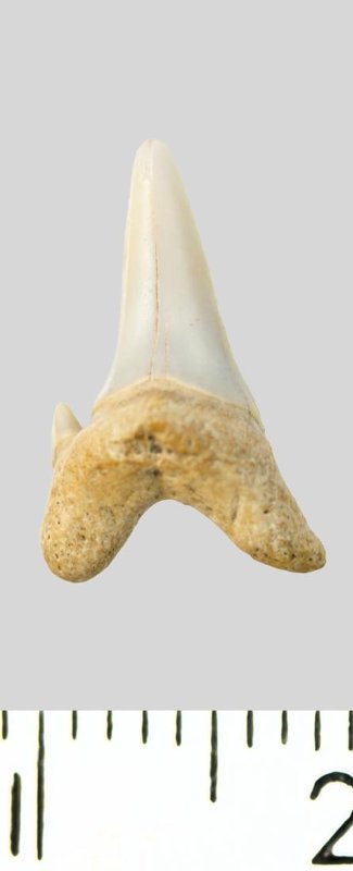 Зуб. Акула. Archaeolamna cf. kopingensis (Davis, 1890). Классификация: Хордовые Chordata, Позвоночные Vertebrata, Хрящевые рыбы Chondrichthyes, Пластиножаберные Elasmobranchii, Акулы Selachii, Ламнообразные Lamniformes