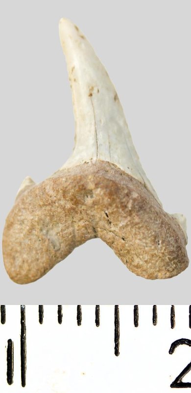 Зуб. Акула. Archaeolamna cf. kopingensis (Davis, 1890). Классификация: Хордовые Chordata, Позвоночные Vertebrata, Хрящевые рыбы Chondrichthyes, Пластиножаберные Elasmobranchii, Акулы Selachii, Ламнообразные Lamniformes