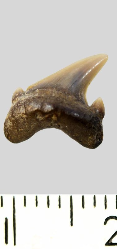 Зуб. Акула. Archaeolamna cf. kopingensis (Davis, 1890). Классификация: Хордовые Chordata, Позвоночные Vertebrata, Хрящевые рыбы Chondrichthyes, Пластиножаберные Elasmobranchii, Акулы Selachii, Ламнообразные Lamniformes