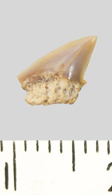 Зуб (фрагмент). Акула. Corax heterodon (Reuss, 1845). Классификация: Хордовые Chordata, Позвоночные Vertebrata, Хрящевые рыбы Chondrichthyes, Пластиножаберные Elasmobranchii, Акулы Selachii, Ламнообразные Lamniformes