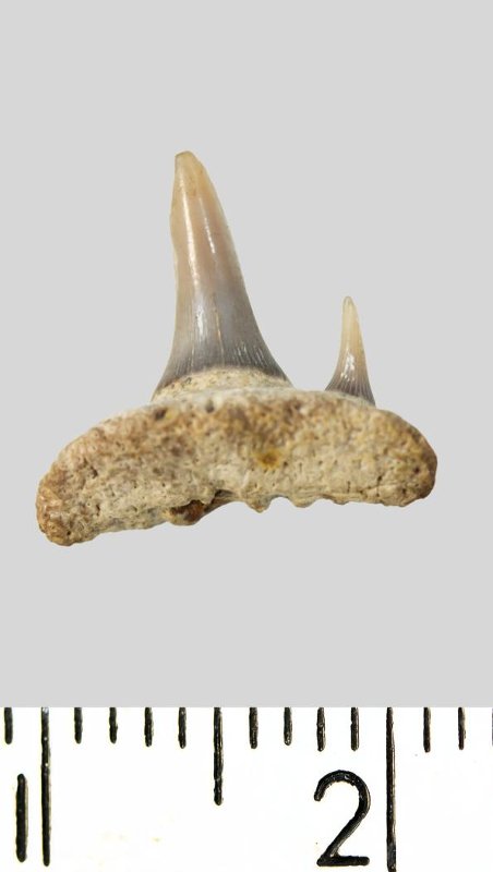 Зуб. Акула. Hybodus dispar (Reuss, 1845). Классификация: Хордовые Chordata, Позвоночные Vertebrata, Хрящевые рыбы Chondrichthyes, Пластиножаберные Elasmobranchii, Акулы Selachii, Многожаберникообразные Hexanchiformes