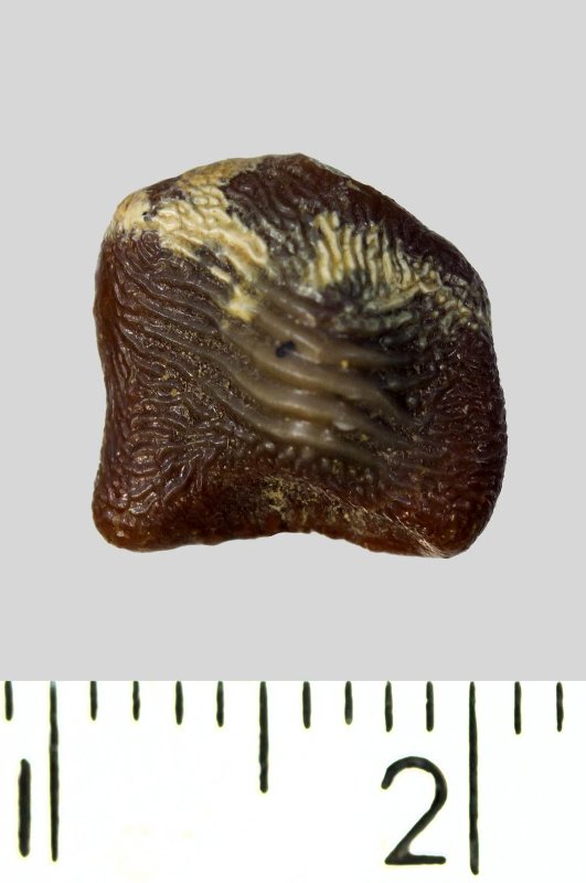 Зуб. Акула. Ptychodus decurrens Agassiz, 1839. Классификация: Хордовые Chordata, Позвоночные Vertebrata, Хрящевые рыбы Chondrichthyes, Пластиножаберные Elasmobranchii, Акулы Selachii, Гибодонтообразные Hybodontiformes