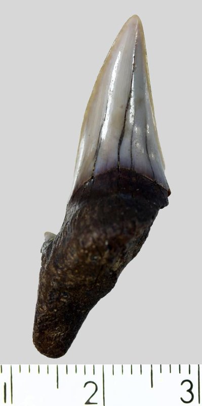 Зуб. Акула. Pseudoisurus tomosus Glueckman, 1957. Классификация: Хордовые Chordata, Позвоночные Vertebrata, Хрящевые рыбы Chondrichthyes, Пластиножаберные Elasmobranchii, Акулы Selachii, Ламнообразные Lamniformes