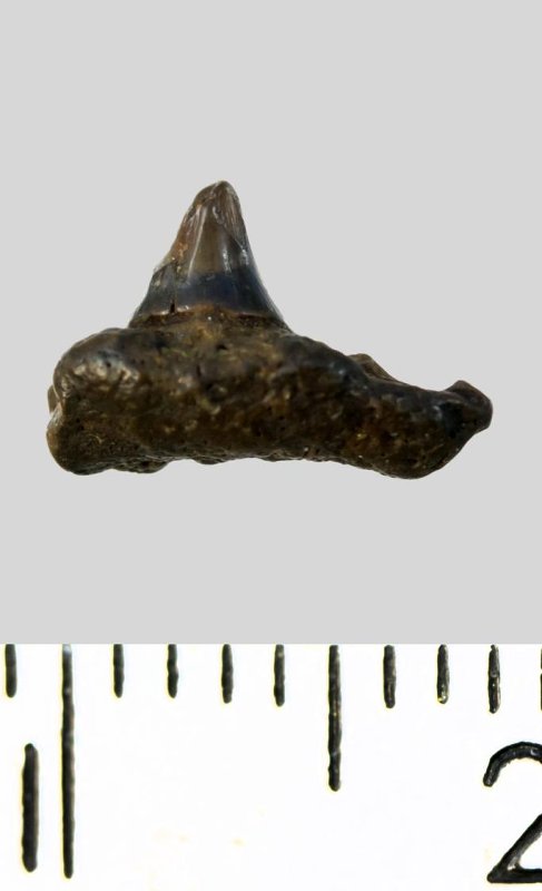 Зуб. Акула. Synechodus dubrisiensis (Mackie, 1863). Классификация: Хордовые Chordata, Позвоночные Vertebrata, Хрящевые рыбы Chondrichthyes, Пластиножаберные Elasmobranchii, Акулы Selachii, Синеходонтообразные Synechodontiformes