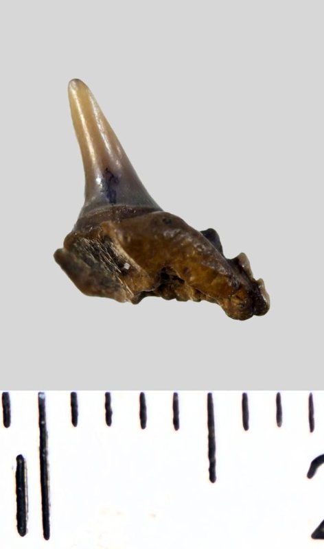 Зуб. Акула. Synechodus dubrisiensis (Mackie, 1863). Классификация: Хордовые Chordata, Позвоночные Vertebrata, Хрящевые рыбы Chondrichthyes, Пластиножаберные Elasmobranchii, Акулы Selachii, Синеходонтообразные Synechodontiformes
