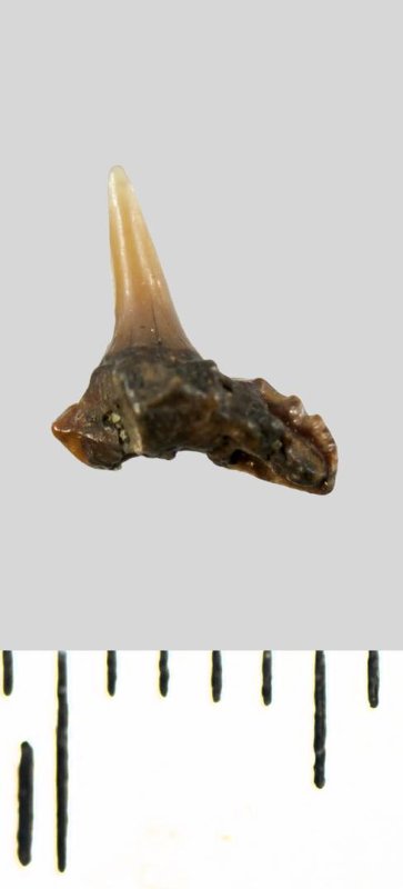 Зуб. Акула. Synechodus dubrisiensis (Mackie, 1863). Классификация: Хордовые Chordata, Позвоночные Vertebrata, Хрящевые рыбы Chondrichthyes, Пластиножаберные Elasmobranchii, Акулы Selachii, Синеходонтообразные Synechodontiformes
