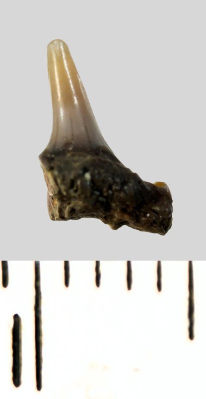 Зуб. Акула. Synechodus dubrisiensis (Mackie, 1863). Классификация: Хордовые Chordata, Позвоночные Vertebrata, Хрящевые рыбы Chondrichthyes, Пластиножаберные Elasmobranchii, Акулы Selachii, Синеходонтообразные Synechodontiformes