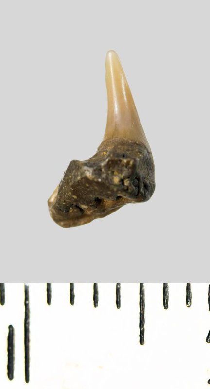 Зуб. Акула. Synechodus dubrisiensis (Mackie, 1863). Классификация: Хордовые Chordata, Позвоночные Vertebrata, Хрящевые рыбы Chondrichthyes, Пластиножаберные Elasmobranchii, Акулы Selachii, Синеходонтообразные Synechodontiformes