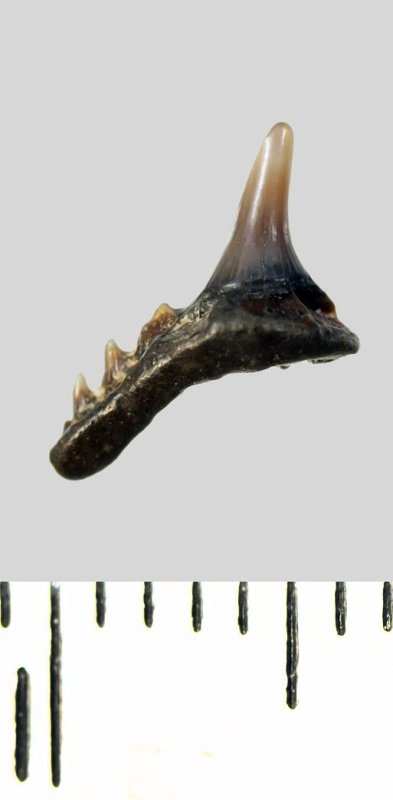 Зуб. Акула. Synechodus dubrisiensis (Mackie, 1863). Классификация: Хордовые Chordata, Позвоночные Vertebrata, Хрящевые рыбы Chondrichthyes, Пластиножаберные Elasmobranchii, Акулы Selachii, Синеходонтообразные Synechodontiformes