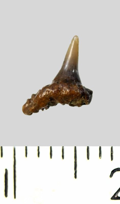 Зуб. Акула. Synechodus dubrisiensis (Mackie, 1863). Классификация: Хордовые Chordata, Позвоночные Vertebrata, Хрящевые рыбы Chondrichthyes, Пластиножаберные Elasmobranchii, Акулы Selachii, Синеходонтообразные Synechodontiformes