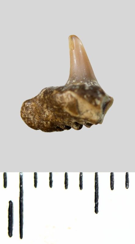 Зуб. Акула. Synechodus dubrisiensis (Mackie, 1863). Классификация: Хордовые Chordata, Позвоночные Vertebrata, Хрящевые рыбы Chondrichthyes, Пластиножаберные Elasmobranchii, Акулы Selachii, Синеходонтообразные Synechodontiformes