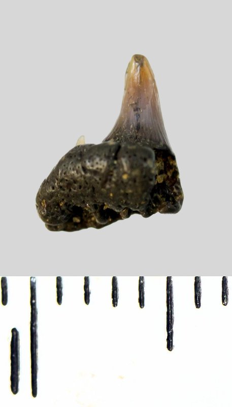 Зуб. Акула. Synechodus dubrisiensis (Mackie, 1863). Классификация: Хордовые Chordata, Позвоночные Vertebrata, Хрящевые рыбы Chondrichthyes, Пластиножаберные Elasmobranchii, Акулы Selachii, Синеходонтообразные Synechodontiformes