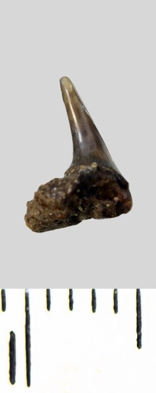 Зуб. Акула. Synechodus dubrisiensis (Mackie, 1863). Классификация: Хордовые Chordata, Позвоночные Vertebrata, Хрящевые рыбы Chondrichthyes, Пластиножаберные Elasmobranchii, Акулы Selachii, Синеходонтообразные Synechodontiformes