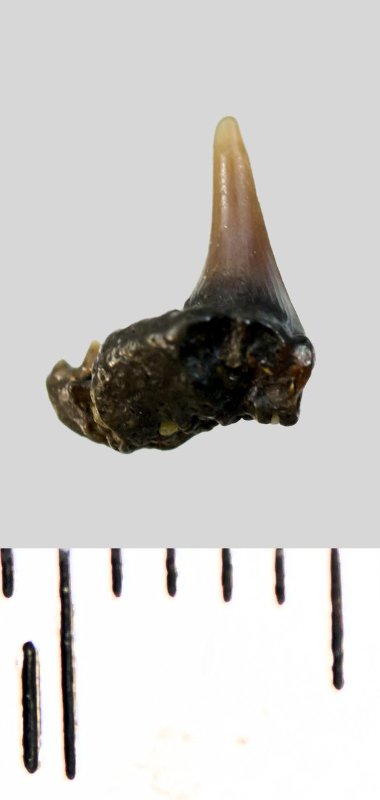 Зуб. Акула. Synechodus dubrisiensis (Mackie, 1863). Классификация: Хордовые Chordata, Позвоночные Vertebrata, Хрящевые рыбы Chondrichthyes, Пластиножаберные Elasmobranchii, Акулы Selachii, Синеходонтообразные Synechodontiformes