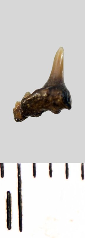 Зуб. Акула. Synechodus dubrisiensis (Mackie, 1863). Классификация: Хордовые Chordata, Позвоночные Vertebrata, Хрящевые рыбы Chondrichthyes, Пластиножаберные Elasmobranchii, Акулы Selachii, Синеходонтообразные Synechodontiformes
