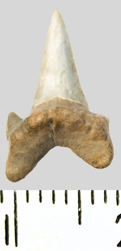 Зуб. Акула. Archaeolamna cf. kopingensis (Davis, 1890). Классификация: Хордовые Chordata, Позвоночные Vertebrata, Хрящевые рыбы Chondrichthyes, Пластиножаберные Elasmobranchii, Акулы Selachii, Ламнообразные Lamniformes