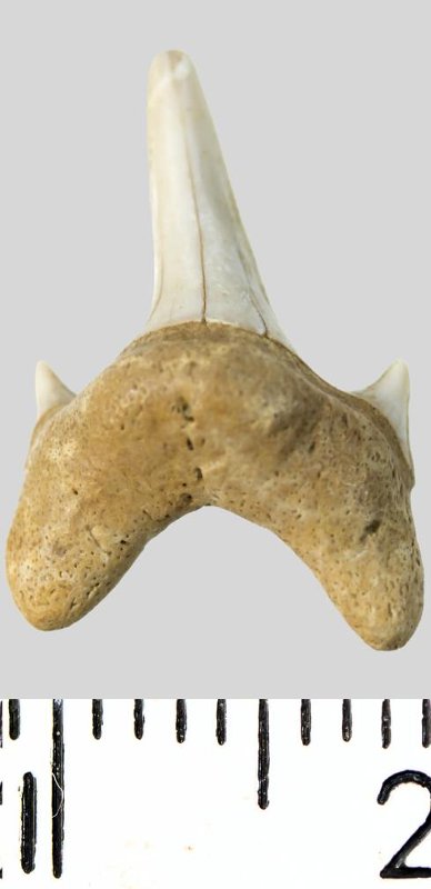 Зуб. Акула. Archaeolamna cf. kopingensis (Davis, 1890). Классификация: Хордовые Chordata, Позвоночные Vertebrata, Хрящевые рыбы Chondrichthyes, Пластиножаберные Elasmobranchii, Акулы Selachii, Ламнообразные Lamniformes