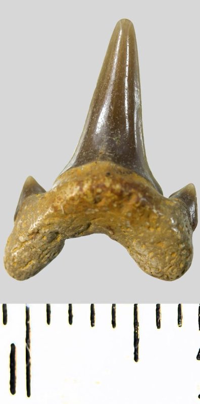 Зуб. Акула. Archaeolamna cf. kopingensis (Davis, 1890). Классификация: Хордовые Chordata, Позвоночные Vertebrata, Хрящевые рыбы Chondrichthyes, Пластиножаберные Elasmobranchii, Акулы Selachii, Ламнообразные Lamniformes