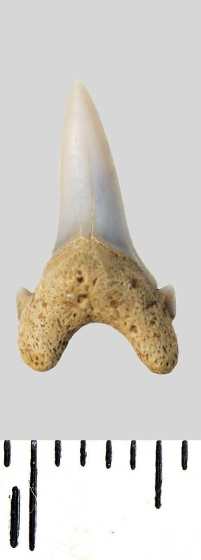 Зуб. Акула. Archaeolamna cf. kopingensis (Davis, 1890). Классификация: Хордовые Chordata, Позвоночные Vertebrata, Хрящевые рыбы Chondrichthyes, Пластиножаберные Elasmobranchii, Акулы Selachii, Ламнообразные Lamniformes