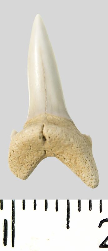 Зуб. Акула. Archaeolamna cf. kopingensis (Davis, 1890). Классификация: Хордовые Chordata, Позвоночные Vertebrata, Хрящевые рыбы Chondrichthyes, Пластиножаберные Elasmobranchii, Акулы Selachii, Ламнообразные Lamniformes