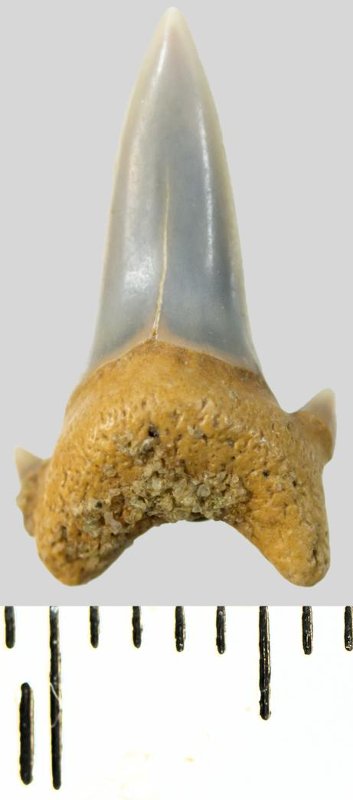 Зуб. Акула. Archaeolamna cf. kopingensis (Davis, 1890). Классификация: Хордовые Chordata, Позвоночные Vertebrata, Хрящевые рыбы Chondrichthyes, Пластиножаберные Elasmobranchii, Акулы Selachii, Ламнообразные Lamniformes