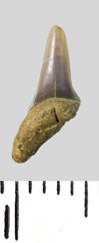 Зуб. Акула. Eostriatolamia subulata (Agassiz, 1843). Классификация: Хордовые Chordata, Позвоночные Vertebrata, Хрящевые рыбы Chondrichthyes, Пластиножаберные Elasmobranchii, Акулы Selachii, Ламнообразные Lamniformes