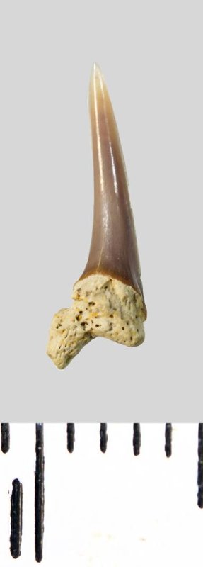 Зуб. Акула. Eostriatolamia subulata (Agassiz, 1843). Классификация: Хордовые Chordata, Позвоночные Vertebrata, Хрящевые рыбы Chondrichthyes, Пластиножаберные Elasmobranchii, Акулы Selachii, Ламнообразные Lamniformes