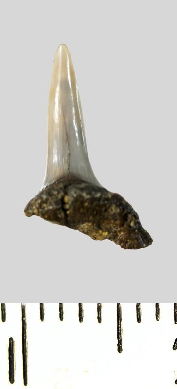 Зуб. Акула. Eostriatolamia subulata (Agassiz, 1843). Классификация: Хордовые Chordata, Позвоночные Vertebrata, Хрящевые рыбы Chondrichthyes, Пластиножаберные Elasmobranchii, Акулы Selachii, Ламнообразные Lamniformes