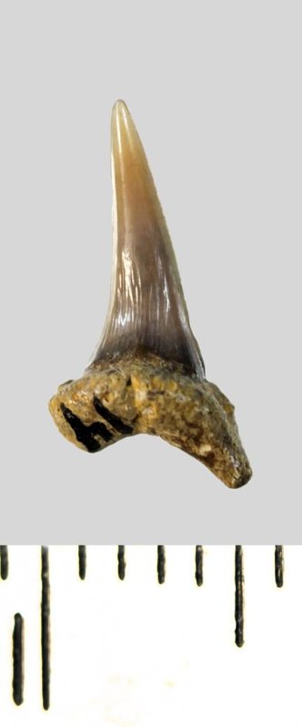 Зуб. Акула. Eostriatolamia subulata (Agassiz, 1843). Классификация: Хордовые Chordata, Позвоночные Vertebrata, Хрящевые рыбы Chondrichthyes, Пластиножаберные Elasmobranchii, Акулы Selachii, Ламнообразные Lamniformes