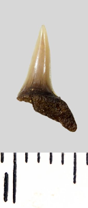 Зуб. Акула. Eostriatolamia subulata (Agassiz, 1843). Классификация: Хордовые Chordata, Позвоночные Vertebrata, Хрящевые рыбы Chondrichthyes, Пластиножаберные Elasmobranchii, Акулы Selachii, Ламнообразные Lamniformes