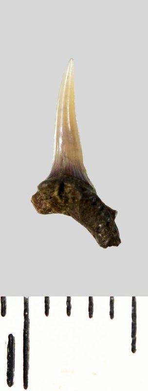 Зуб. Акула. Eostriatolamia subulata (Agassiz, 1843). Классификация: Хордовые Chordata, Позвоночные Vertebrata, Хрящевые рыбы Chondrichthyes, Пластиножаберные Elasmobranchii, Акулы Selachii, Ламнообразные Lamniformes