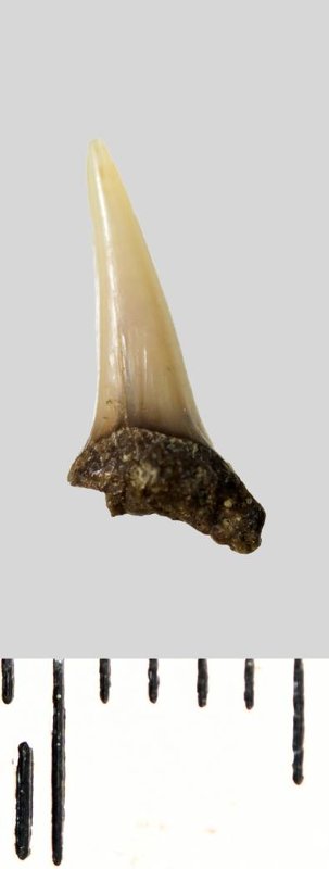 Зуб. Акула. Eostriatolamia subulata (Agassiz, 1843). Классификация: Хордовые Chordata, Позвоночные Vertebrata, Хрящевые рыбы Chondrichthyes, Пластиножаберные Elasmobranchii, Акулы Selachii, Ламнообразные Lamniformes