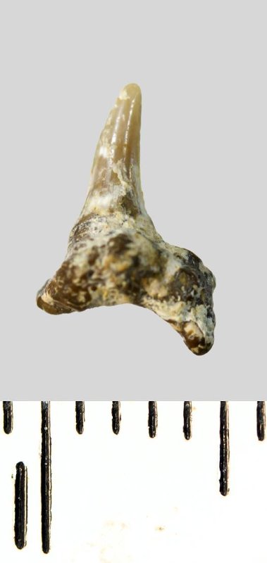 Зуб. Акула. Eostriatolamia subulata (Agassiz, 1843). Классификация: Хордовые Chordata, Позвоночные Vertebrata, Хрящевые рыбы Chondrichthyes, Пластиножаберные Elasmobranchii, Акулы Selachii, Ламнообразные Lamniformes