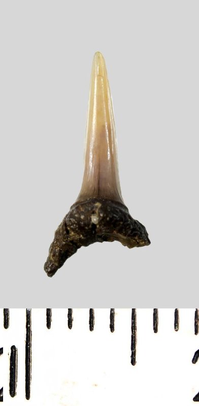 Зуб. Акула. Eostriatolamia subulata (Agassiz, 1843). Классификация: Хордовые Chordata, Позвоночные Vertebrata, Хрящевые рыбы Chondrichthyes, Пластиножаберные Elasmobranchii, Акулы Selachii, Ламнообразные Lamniformes