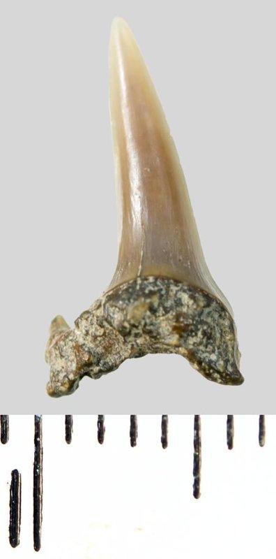 Зуб. Акула. Eostriatolamia subulata (Agassiz, 1843). Классификация: Хордовые Chordata, Позвоночные Vertebrata, Хрящевые рыбы Chondrichthyes, Пластиножаберные Elasmobranchii, Акулы Selachii, Ламнообразные Lamniformes