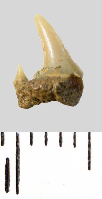 Зуб. Акула. Eostriatolamia subulata (Agassiz, 1843). Классификация: Хордовые Chordata, Позвоночные Vertebrata, Хрящевые рыбы Chondrichthyes, Пластиножаберные Elasmobranchii, Акулы Selachii, Ламнообразные Lamniformes