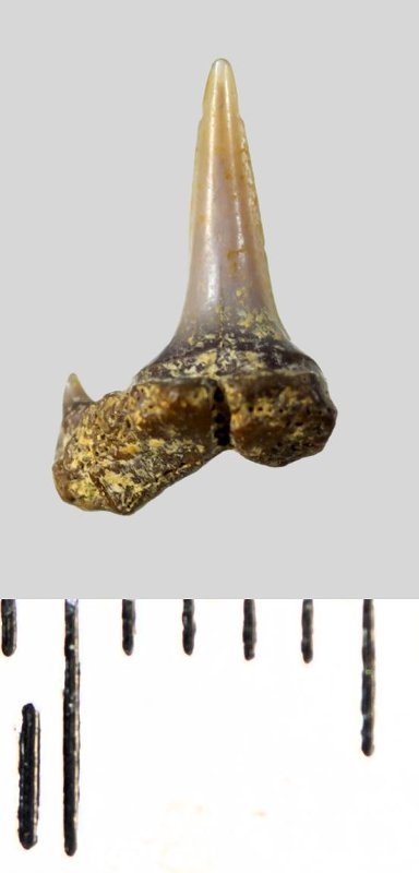 Зуб. Акула. Eostriatolamia subulata (Agassiz, 1843). Классификация: Хордовые Chordata, Позвоночные Vertebrata, Хрящевые рыбы Chondrichthyes, Пластиножаберные Elasmobranchii, Акулы Selachii, Ламнообразные Lamniformes