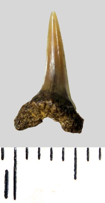 Зуб. Акула. Eostriatolamia subulata (Agassiz, 1843). Классификация: Хордовые Chordata, Позвоночные Vertebrata, Хрящевые рыбы Chondrichthyes, Пластиножаберные Elasmobranchii, Акулы Selachii, Ламнообразные Lamniformes