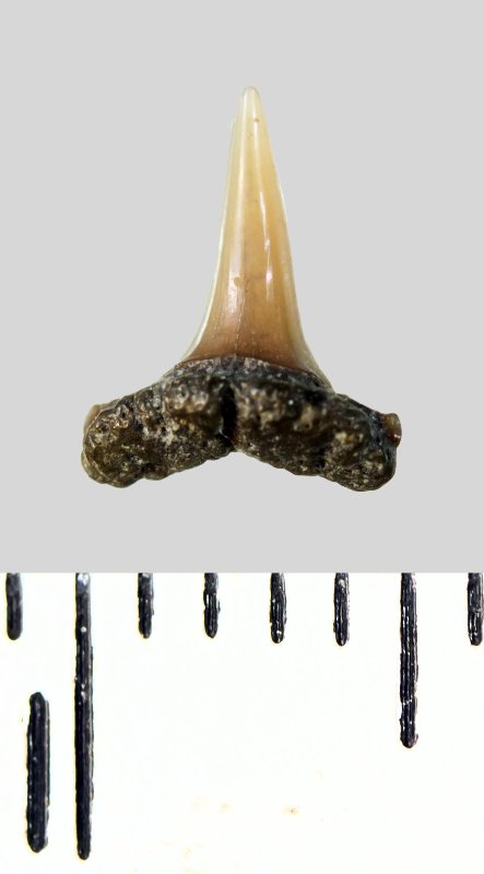 Зуб. Акула. Eostriatolamia subulata (Agassiz, 1843). Классификация: Хордовые Chordata, Позвоночные Vertebrata, Хрящевые рыбы Chondrichthyes, Пластиножаберные Elasmobranchii, Акулы Selachii, Ламнообразные Lamniformes