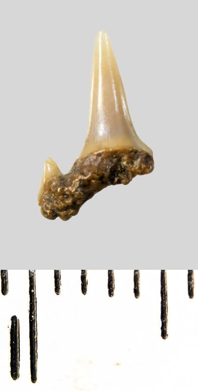 Зуб. Акула. Eostriatolamia subulata (Agassiz, 1843). Классификация: Хордовые Chordata, Позвоночные Vertebrata, Хрящевые рыбы Chondrichthyes, Пластиножаберные Elasmobranchii, Акулы Selachii, Ламнообразные Lamniformes