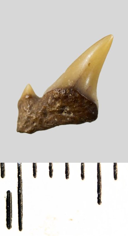 Зуб. Акула. Eostriatolamia subulata (Agassiz, 1843). Классификация: Хордовые Chordata, Позвоночные Vertebrata, Хрящевые рыбы Chondrichthyes, Пластиножаберные Elasmobranchii, Акулы Selachii, Ламнообразные Lamniformes