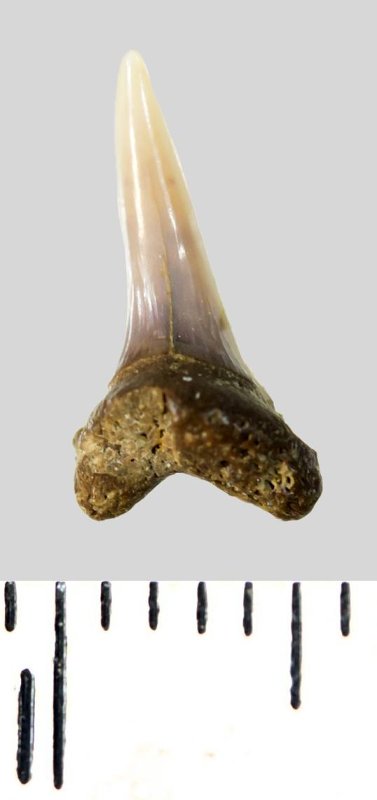 Зуб. Акула. Eostriatolamia subulata (Agassiz, 1843). Классификация: Хордовые Chordata, Позвоночные Vertebrata, Хрящевые рыбы Chondrichthyes, Пластиножаберные Elasmobranchii, Акулы Selachii, Ламнообразные Lamniformes