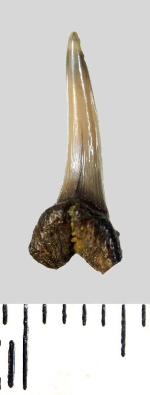 Зуб. Акула. Eostriatolamia subulata (Agassiz, 1843). Классификация: Хордовые Chordata, Позвоночные Vertebrata, Хрящевые рыбы Chondrichthyes, Пластиножаберные Elasmobranchii, Акулы Selachii, Ламнообразные Lamniformes