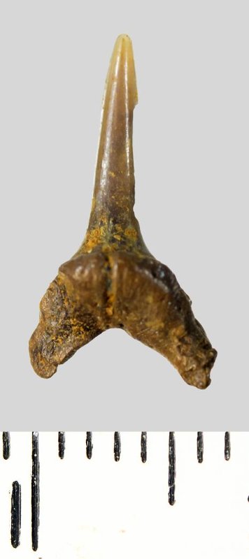 Зуб. Акула. Eostriatolamia subulata (Agassiz, 1843). Классификация: Хордовые Chordata, Позвоночные Vertebrata, Хрящевые рыбы Chondrichthyes, Пластиножаберные Elasmobranchii, Акулы Selachii, Ламнообразные Lamniformes