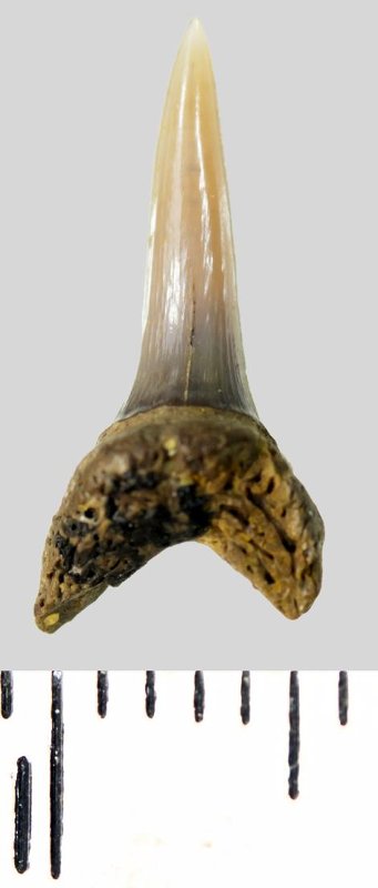Зуб. Акула. Eostriatolamia subulata (Agassiz, 1843). Классификация: Хордовые Chordata, Позвоночные Vertebrata, Хрящевые рыбы Chondrichthyes, Пластиножаберные Elasmobranchii, Акулы Selachii, Ламнообразные Lamniformes