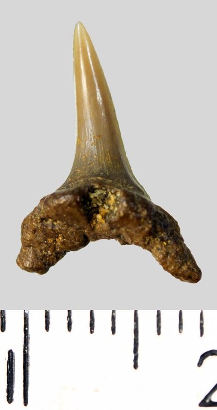 Зуб. Акула. Eostriatolamia subulata (Agassiz, 1843). Классификация: Хордовые Chordata, Позвоночные Vertebrata, Хрящевые рыбы Chondrichthyes, Пластиножаберные Elasmobranchii, Акулы Selachii, Ламнообразные Lamniformes