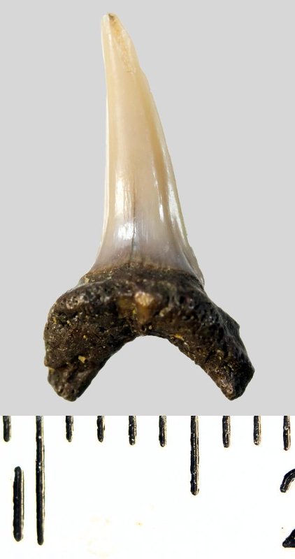 Зуб. Акула. Eostriatolamia subulata (Agassiz, 1843). Классификация: Хордовые Chordata, Позвоночные Vertebrata, Хрящевые рыбы Chondrichthyes, Пластиножаберные Elasmobranchii, Акулы Selachii, Ламнообразные Lamniformes